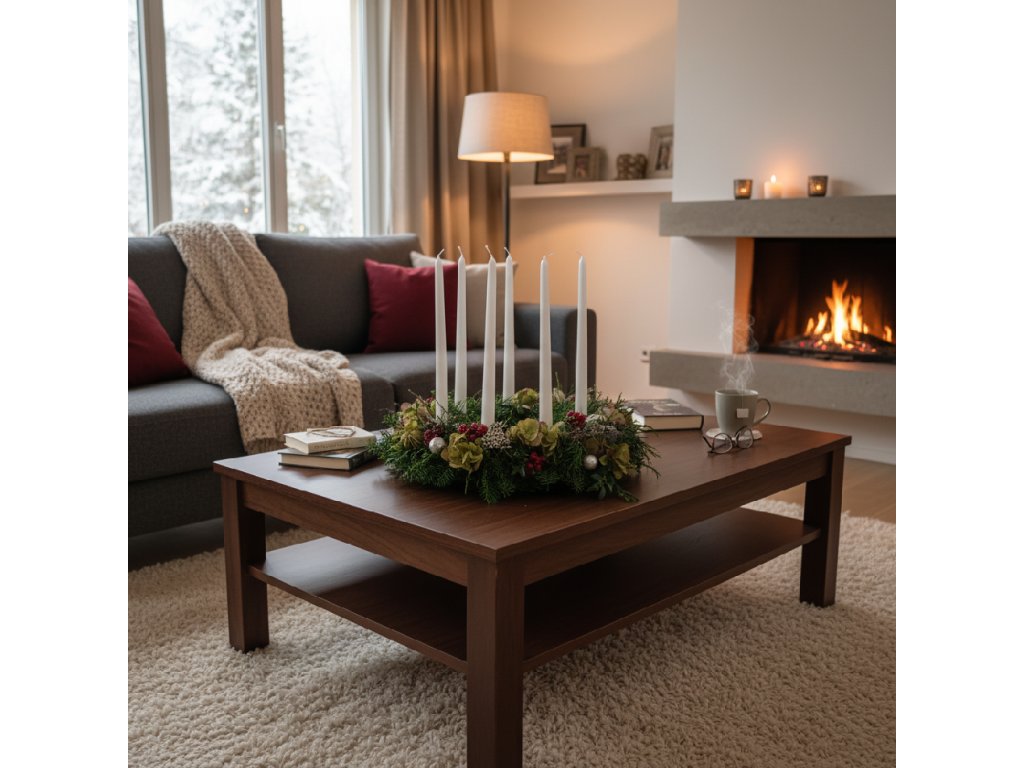 Obsahuje 8 bílých perleťových kónických svíček uspořádaných do kruhu